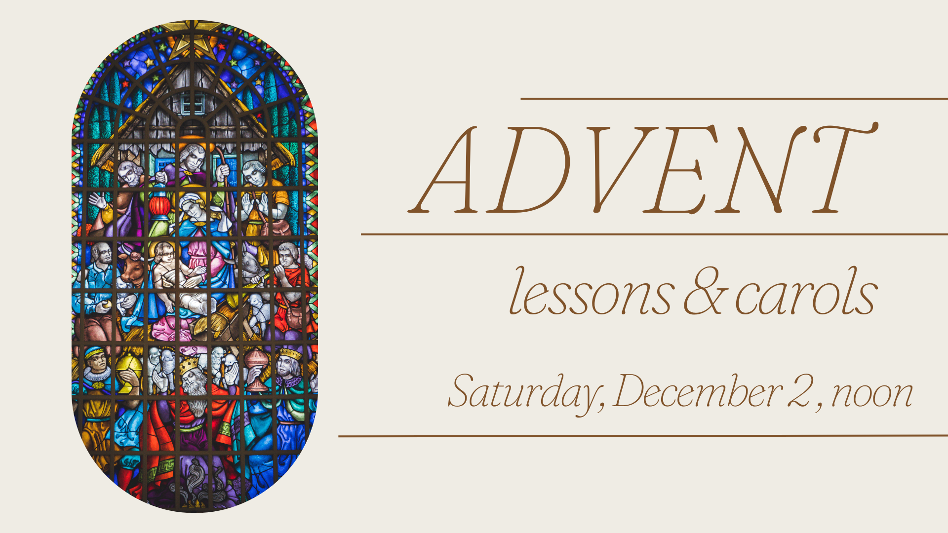 Advent Lessons & Carols Prepare your hearts for the coming of Christ with this unique service of scripture readings and song. St. James Music Ministry and choir members of all ages will share beautiful choral music and beloved carols. WhereSt. James Church Get Directions WhenDecember 212:00 pm