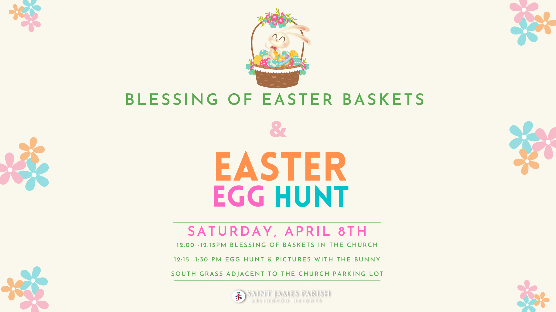 This event is free and parish-wide and sponsored by the St. James School FSA. All bunnies are welcome!